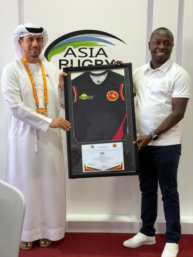 Hon Peter Ogwang, The Minister of State for Education and Sports (Sports), met with the President of Asia Rugby,Mr Qais Al- Dhalai in Dubai, discussing potential collaborations to promote rugby in Uganda and the region.